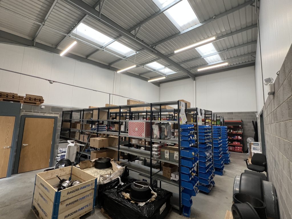 The units are of steel portal framed construction clad with insulated profiled sheeting. Unit 4 comprises warehouse space configured in an ‘L shape’ around an office to the front of the unit which provides wc and kitchenette facilities and mezzanine storage above. Unit 5 comprises an open plan warehouse with a wc and kitchenette.
